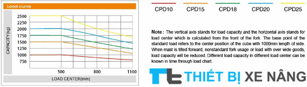 Khoảng cách tâm bánh trước đến càng nâng (x) |
