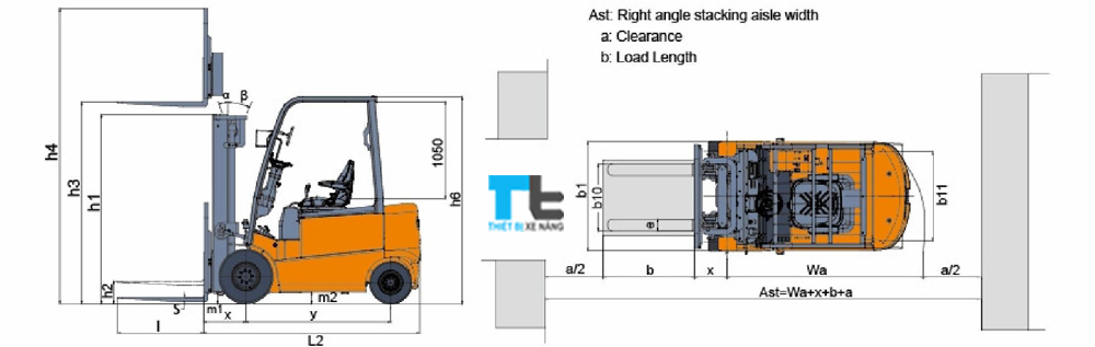 KÍCH THƯỚC XE NÂNG ĐIỆN 1 TẤN HELI