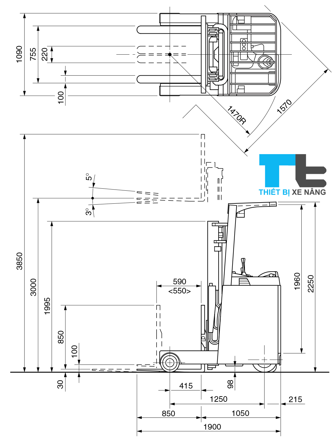 Chiều dài đến càng nâng (D) | mm | 1050 |