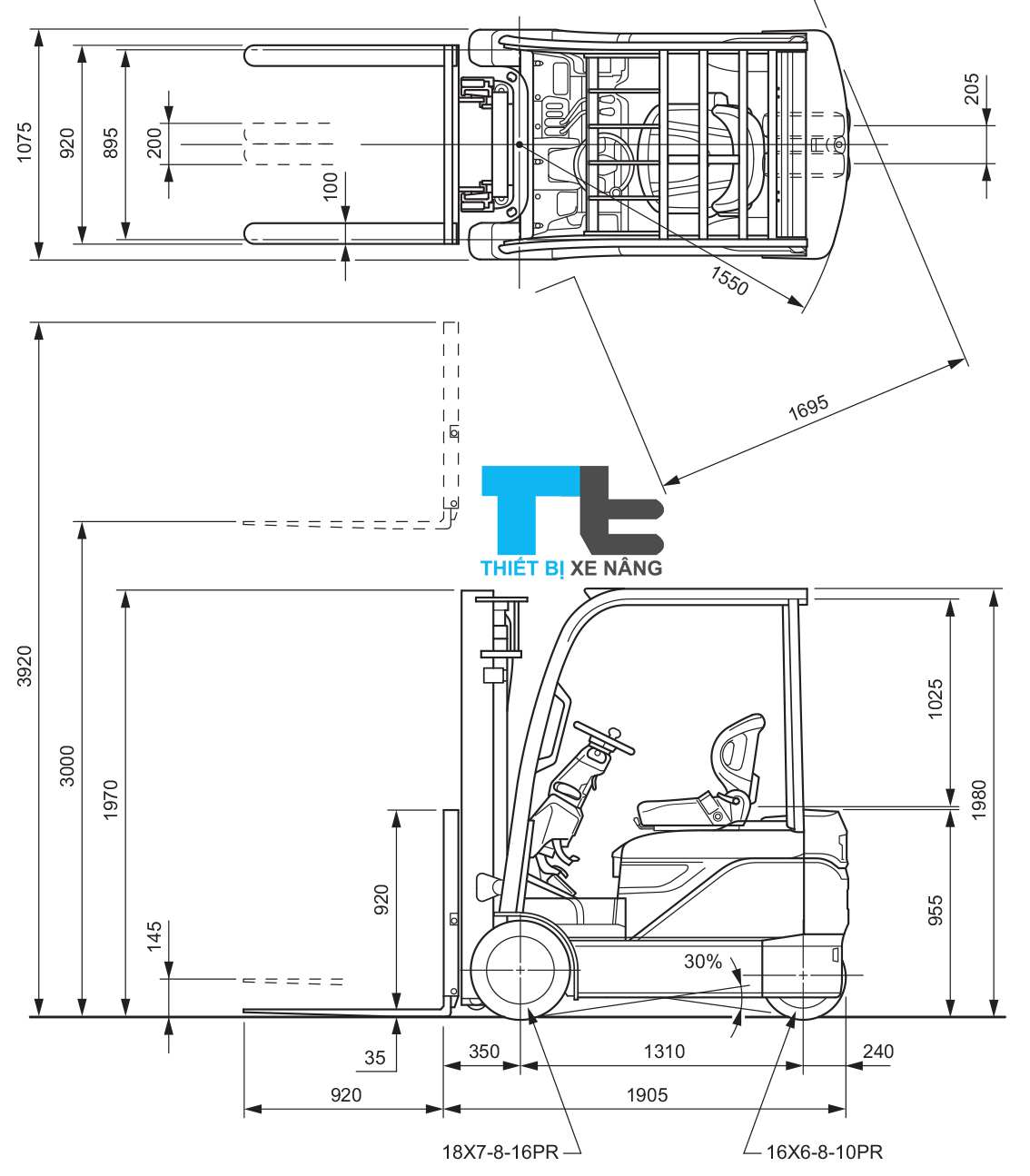 Chiều dài đến càng nâng (D) | mm | 1905 |
