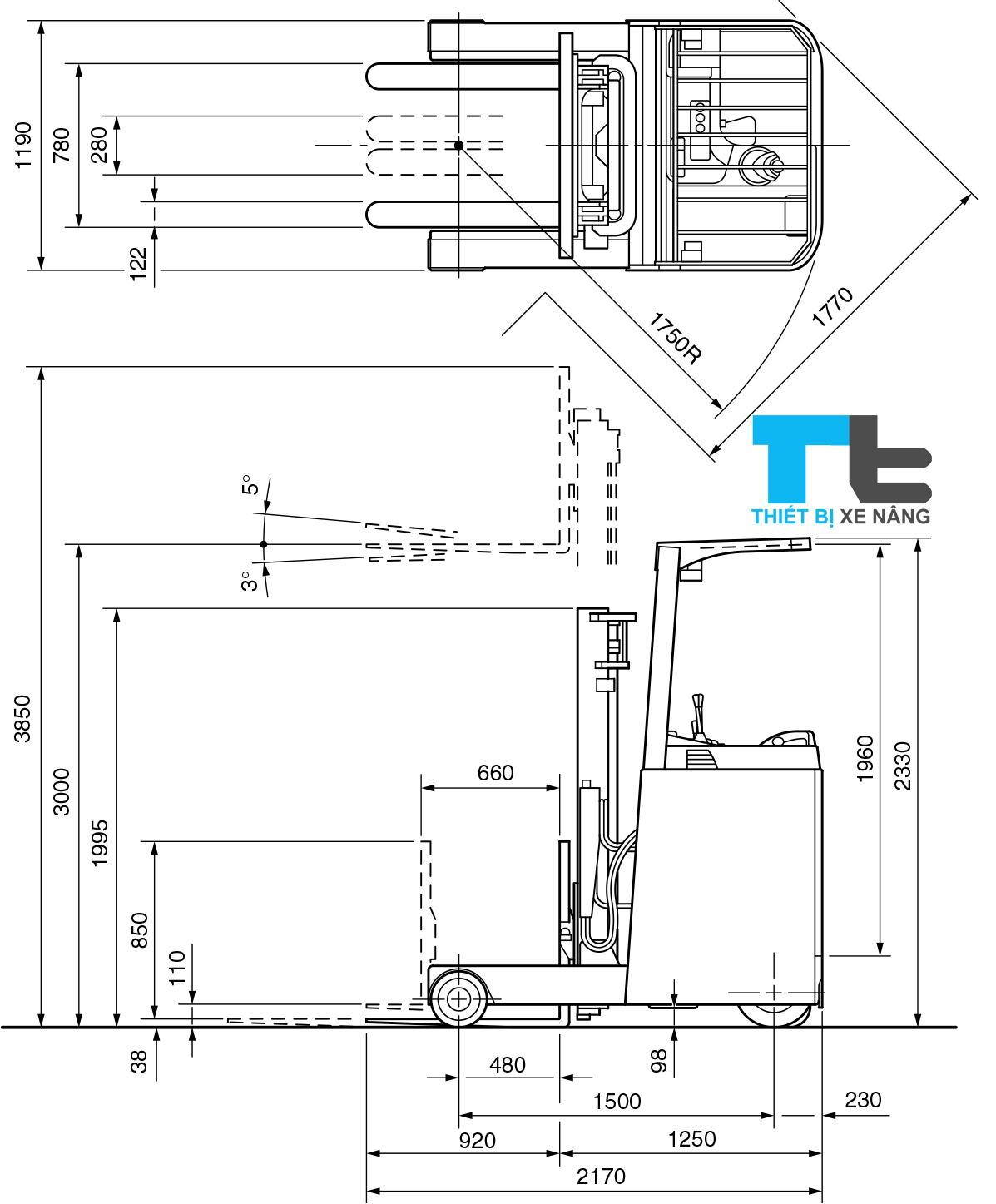 Chiều dài đến càng nâng (D) | mm | 1250 |