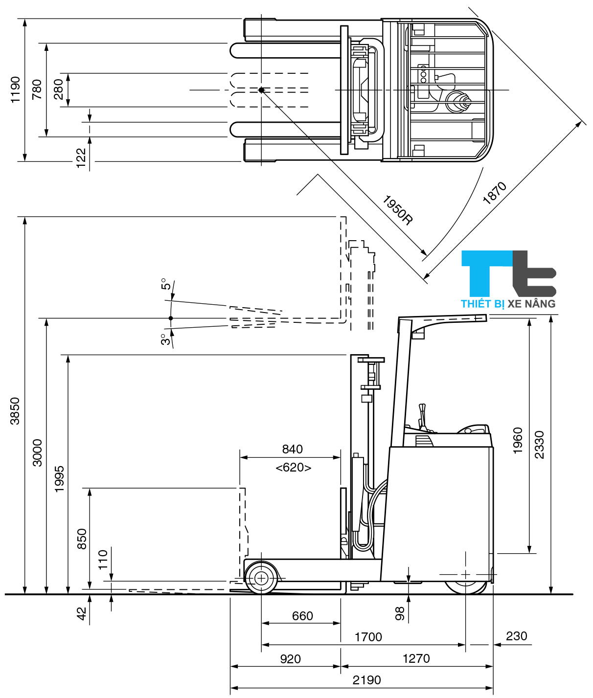 Chiều dài đến càng nâng (D) | mm | 1270 |