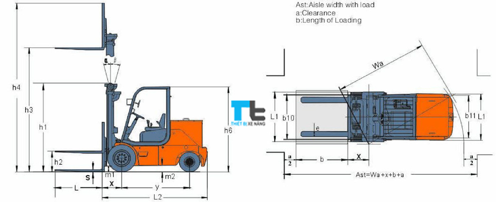 KÍCH THƯỚC XE NÂNG ĐIỆN 4 TẤN HELI