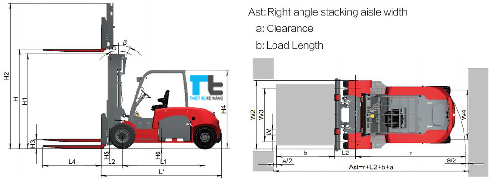 KÍCH THƯỚC XE NÂNG ĐIỆN 9 TẤN HELI